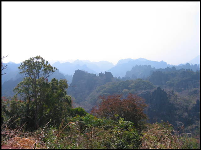 Richtung Vietnam. Eine Gegend mit bizarren Felsformationen. Kurz vor